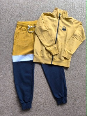 Chlapecká tepláková souprava zn. Benetton, vel. 162. Tepláky a mikina kupované každé zvlášť, ale nošené jak samostatně, tak v kompletu. Reálná barva mikiny je vidět na fotce s cedulkou.