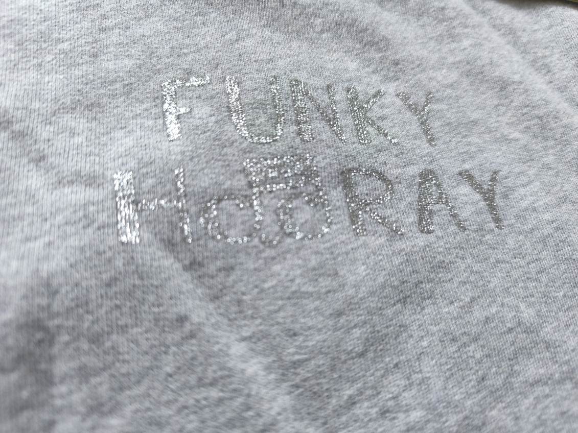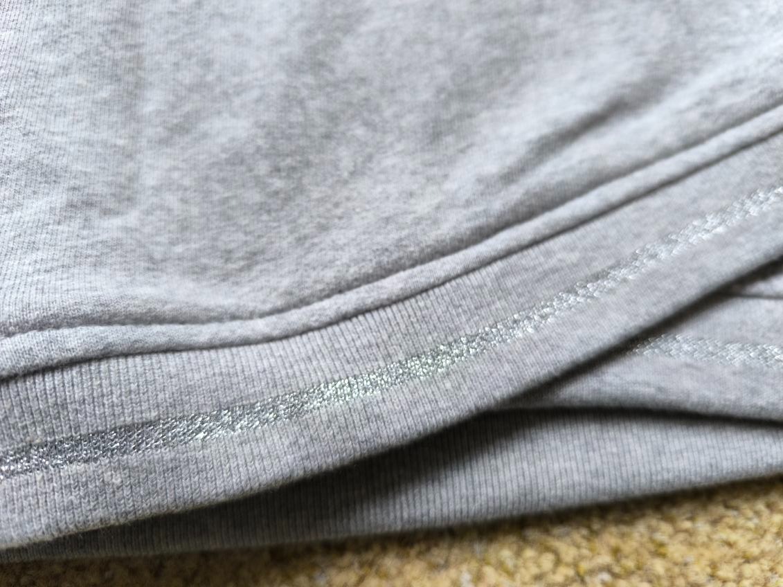 Krásné stříbrné prvky - nápis plus lemování okrajů mikiny vpředu i vzadu.