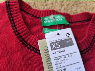 Dětský svetr zn. Benetton, červený, vel. 110.
