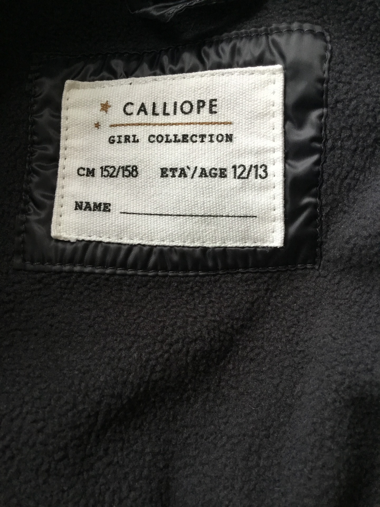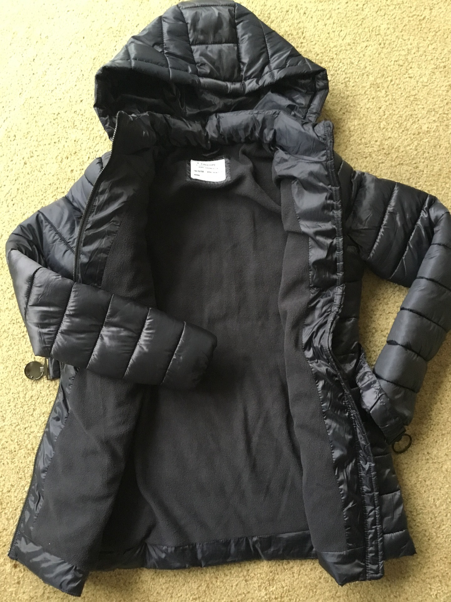 Krásný dívčí zimní kabát zn. Calliope, vel. 152/158. Příjemný na dotek, luxusní černá barva. Možno nosit bez pásku.