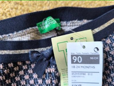 Dívčí kalhoty zn. Benetton, vel. 90. Protkané stříbrnou nitkou.