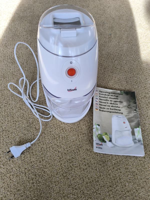 Drtič ledu zn. Bifinett, model H-3225. V bezvadném stavu, jako nový. Délka přívodního kabelu: 165cm. Včetně českého návodu.